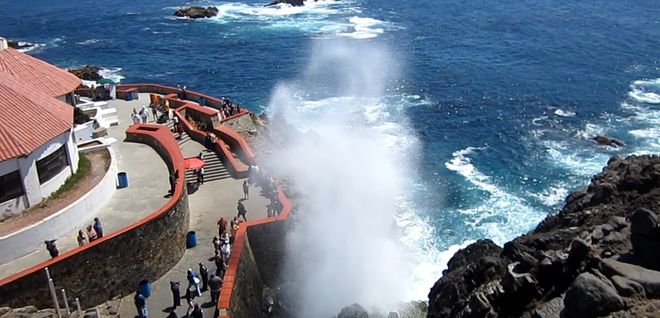 Из-под нее в часы прилива вырывается гигантский столб воды, полюбоваться которым и ощутить брызги соленой океанской воды можно на специальной смотровой площадке.